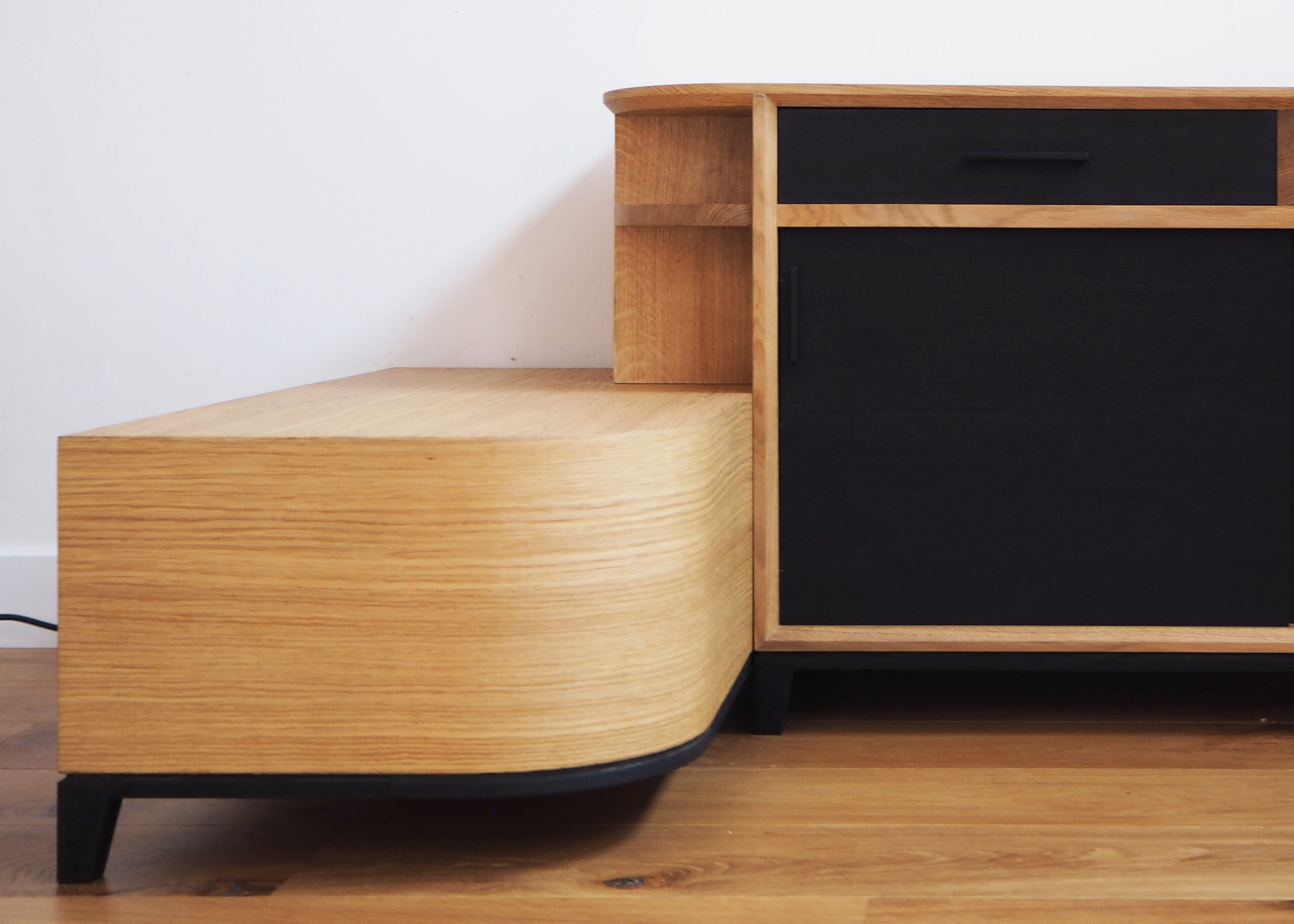 Je fabrique tous types de meubles en bois massif, en panneaux plaqués ou marquetés bois. Je dessine les meubles selon vos goûts et vos envies. J’accorde une attention particulière aux détails que ce soit avec un contraste de matériaux pour mettre certaines parties en valeur, ou une poignée ou un piètement inhabituel.